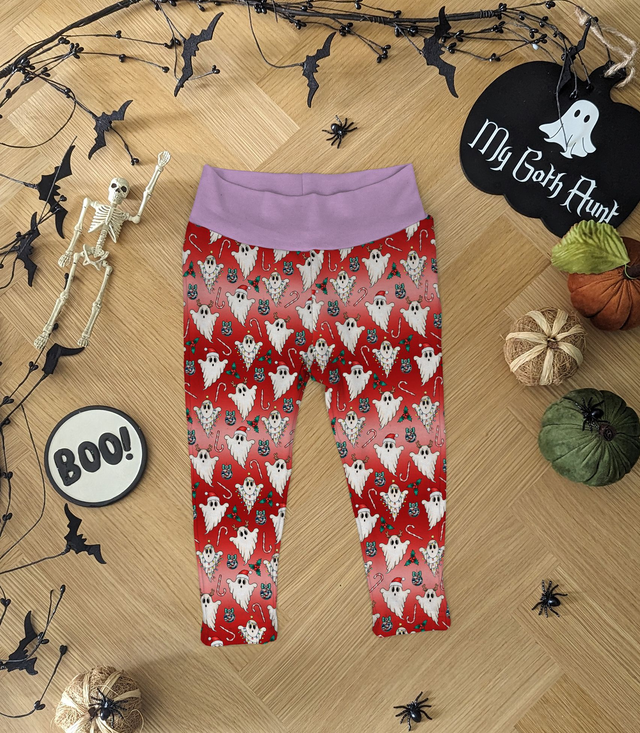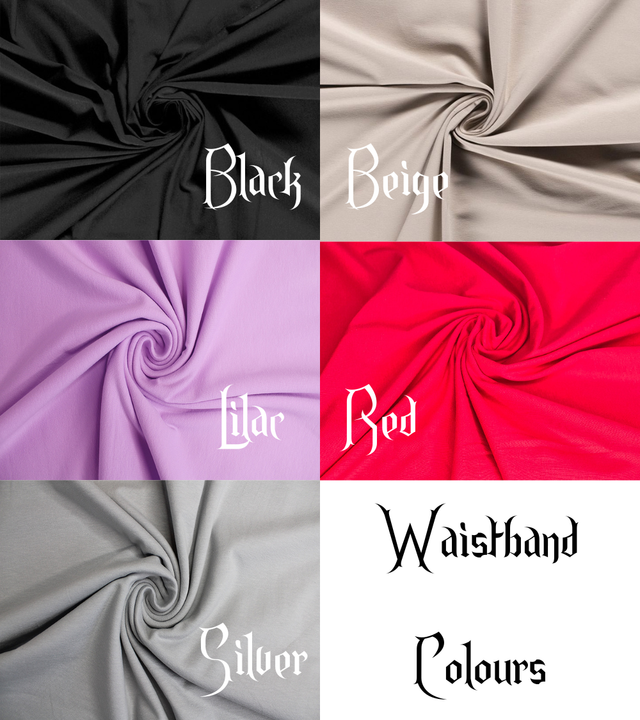 Due to the nature of the how these leggings are made, the pattern placement and size will vary for each one. Chose the colour you would like for the waistband.