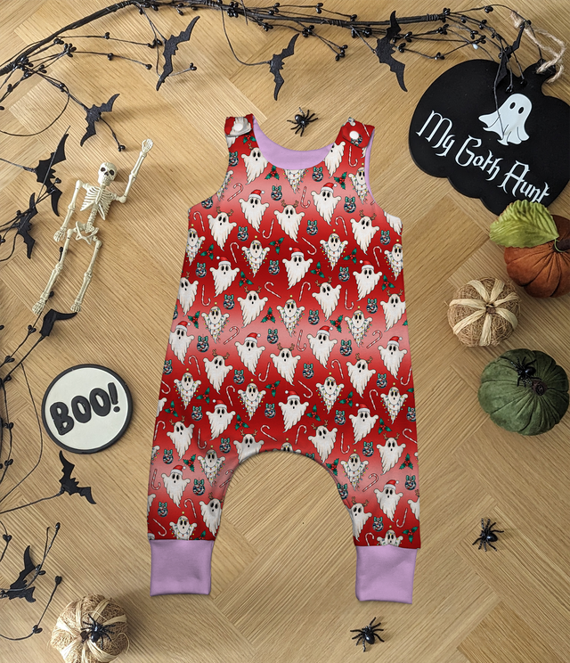 Due to the nature of the how these rompers are made, the pattern placement and size will vary for each one. Chose the colour you would like for the lining and cuffs.