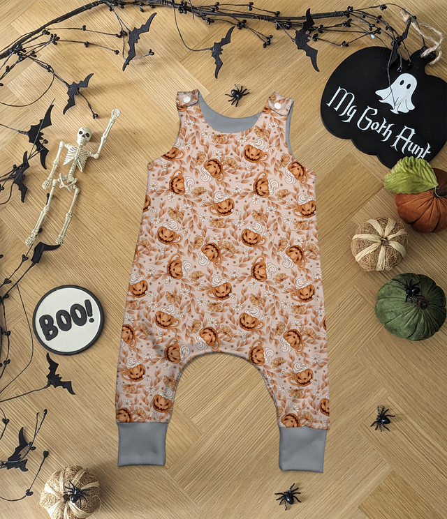 Due to the nature of the how these rompers are made, the pattern placement and size will vary for each one. Chose the colour you would like for the lining and cuffs.